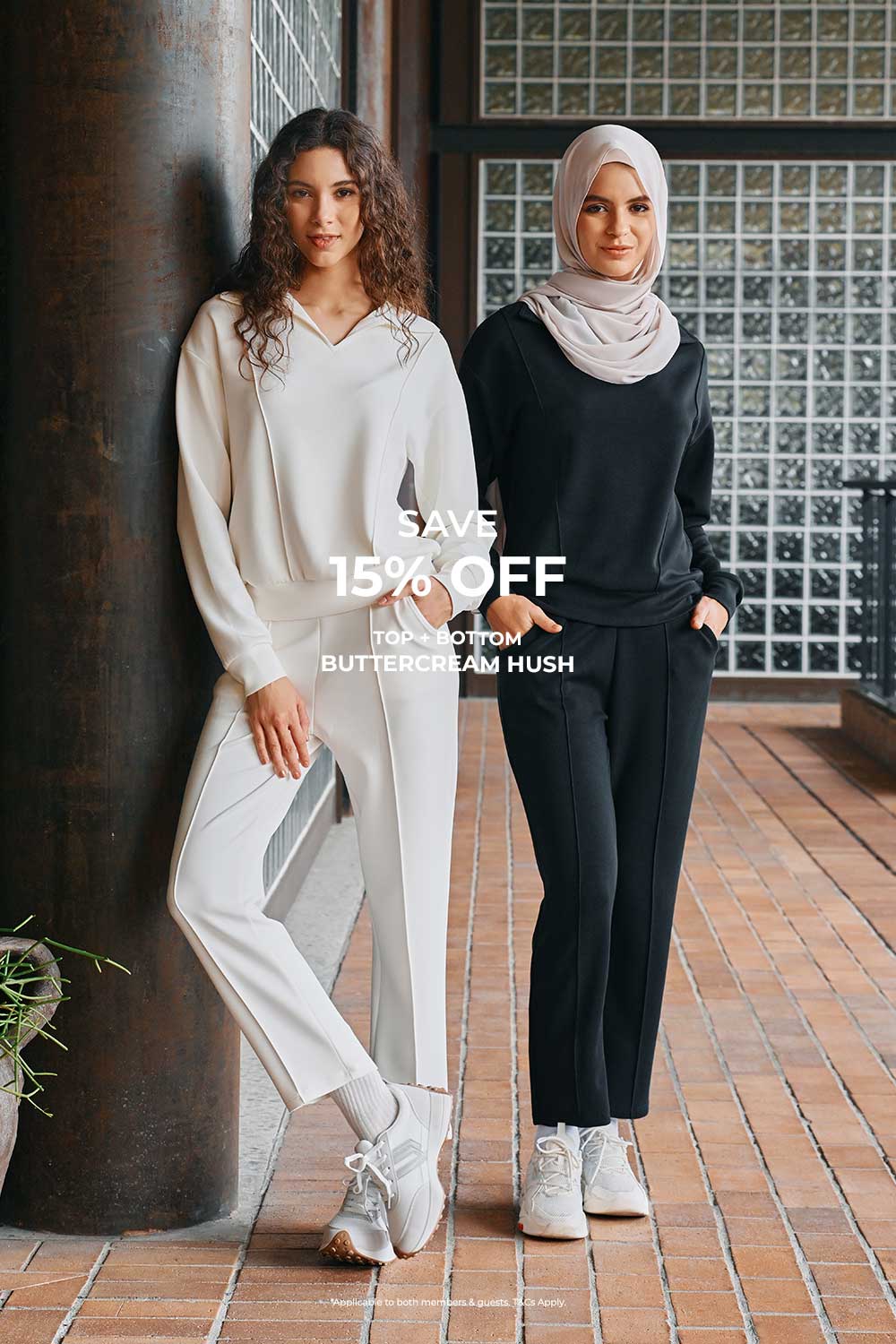 - Cross sales – mixing between Buttercream and Ardena is not allowed; bundles must match within the same set. Eligible items include: BUTTERCREAM Open-Collared Hush Pullover & BUTTERCREAM Tapered Hush Pants, ARDENA Sabrina-Neckline Hush Top & ARDENA Wide-Legged Hush Pants.